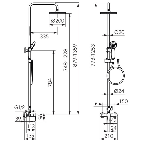Fejzuhany és kézizuhany csatlakozás G1/2 - felső illesztés