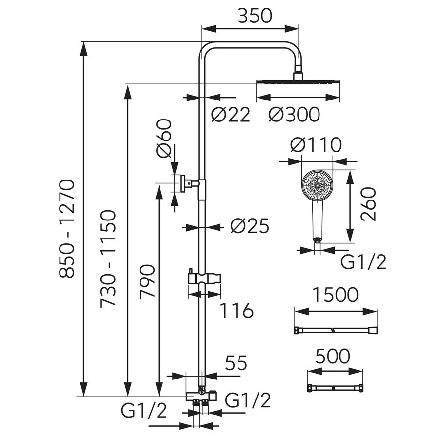 Ferro Ritto egykaros zuhanyrendszer, króm NP84-BTR7U