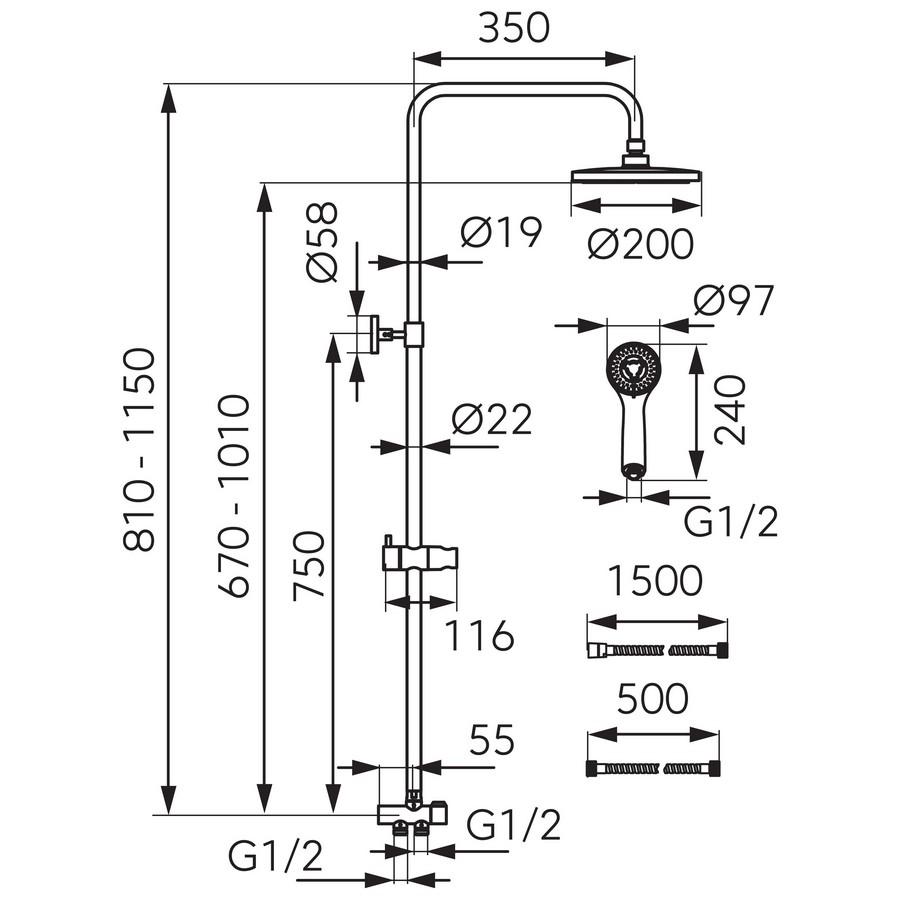 állítható magasságú fém zuhanyrúd: 81 - 115 cm