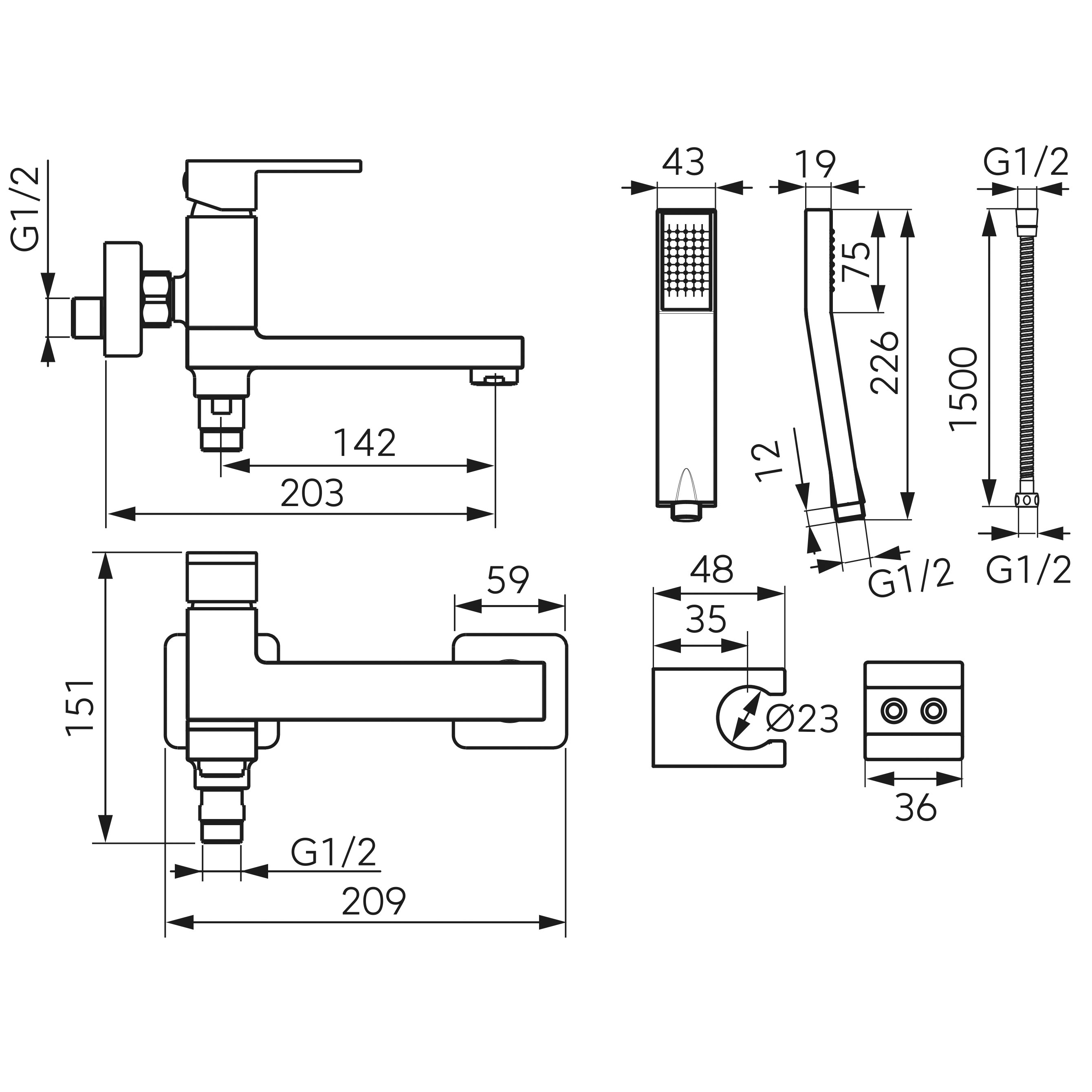 Zuhanyszett egypontos fali rögzítéssel