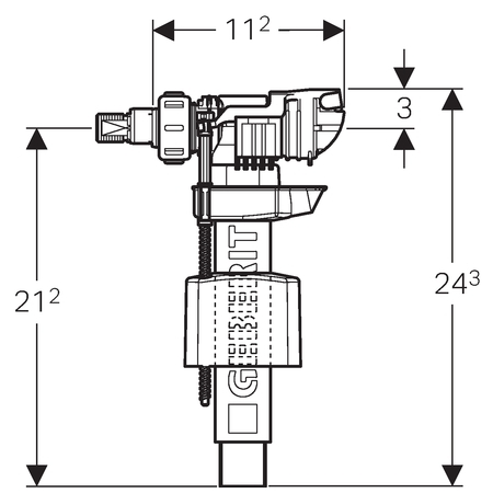 Geberit 380 típusú töltőszelep, oldalsó vízcsatlakozás, 3/8, sárgaréz csatlakozócsonk 240.715.00.1 / 240715001Geberit