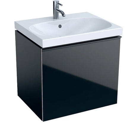 Geberit Acanto alsó szekrény mosdóhoz, egy fiókkal és egy belső fiókkal, matt fekete/fekete üveg 500.609.16.1Geberit