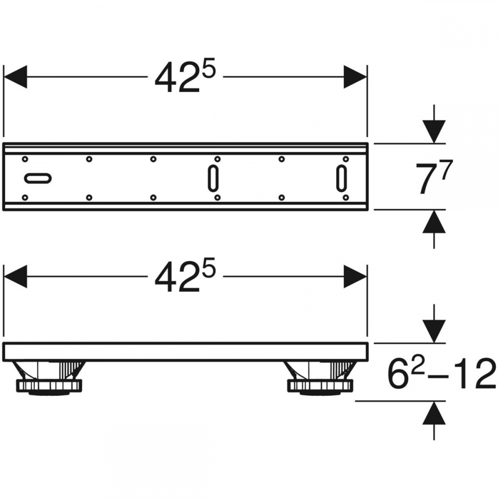 Geberit láb- és keresztelemkészlet akril zuhanytálcákhoz, 6-12 cm magas (2 db 42,5 cm hosszú keresztelem, 3 db 42,5 cm hosszú falielem, 4 db láb, 2 db rögzítőfül) 550.950.00.1