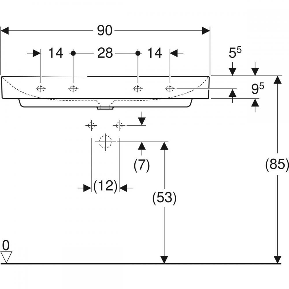 Geberit ONE mosdó csaplyuk nélkül 90x48 cm, 505.021.01.3