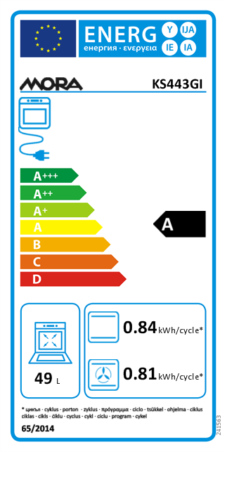 Energiaosztály A-tól (hatékony) G-ig (kevésbé hatékony) terjedő skálán: A