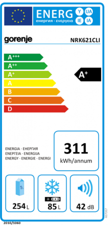 Gorenje szabadonálló kombinált hűtőszekrény A+, NRK621CLIGorenje