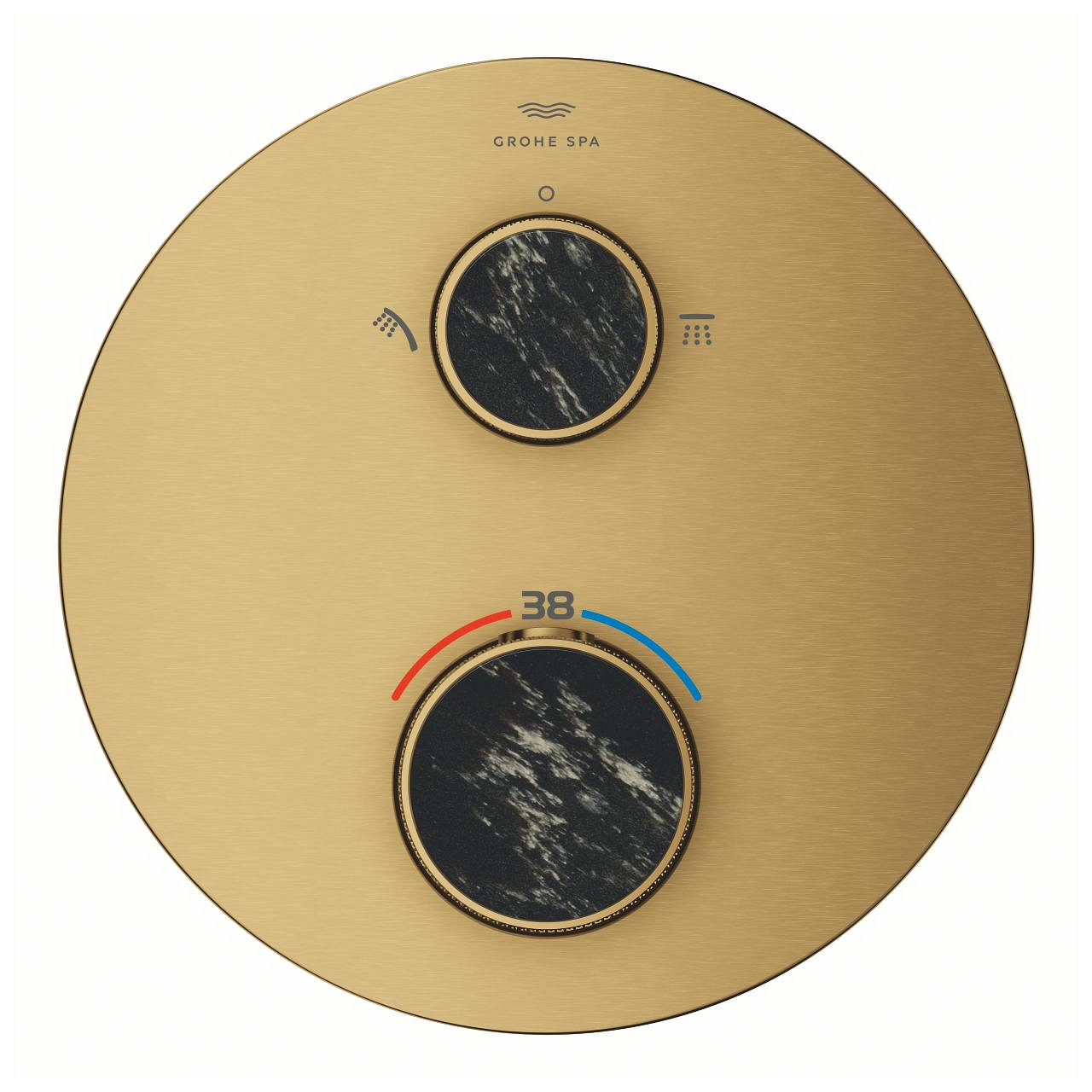 Grohe Atrio Private Collection termosztatikus zuhanycsaptelep 2 kimenethez, beépített elzáró/váltó szeleppel, gombbal, cool sunrise 24396GL0