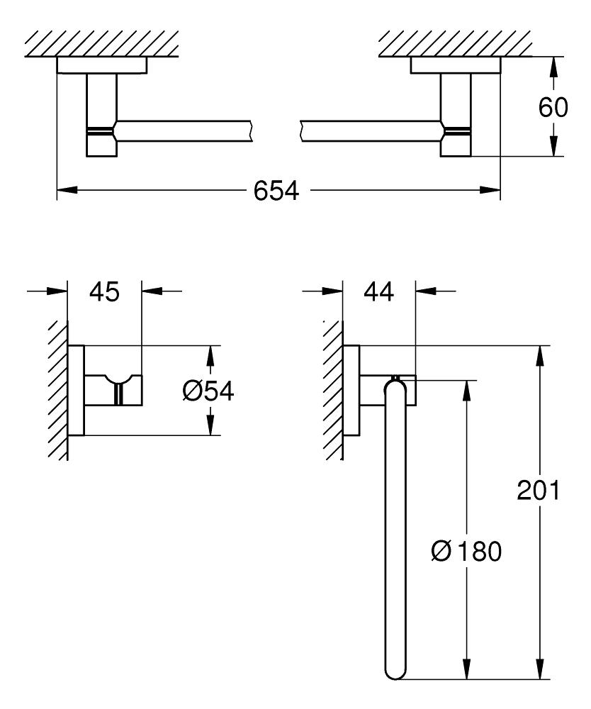 towel rail, 654 mm (40 366 EN1)