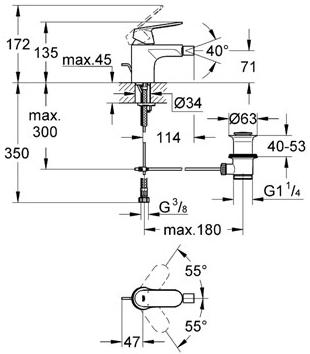 Grohe BauClassic egykaros bidécsaptelep leeresztővel, króm 32864000
