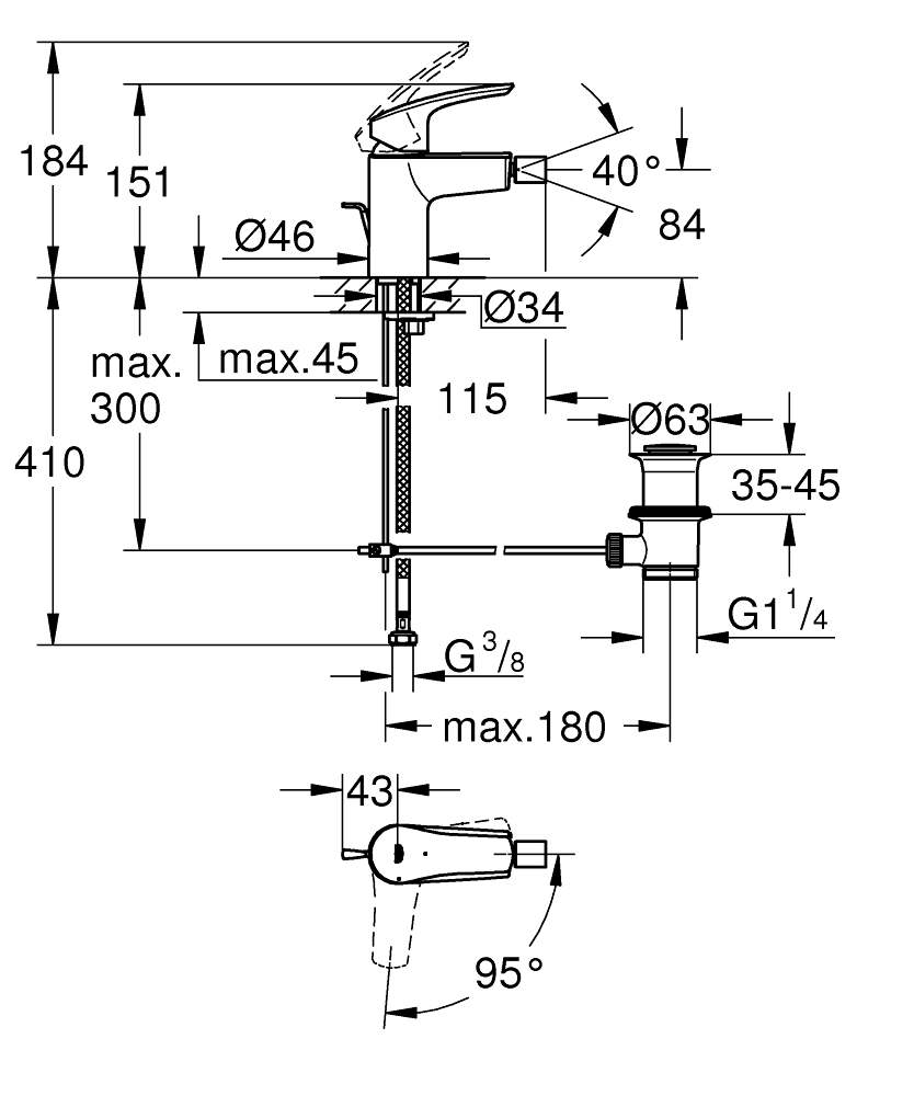 Grohe Eurosmart egykaros bidécsaptelep S-es méret automata leeresztővel, króm 32928003