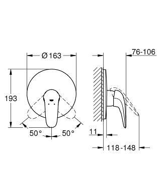 Grohe Eurostyle (2015) egykaros falba épített zuhanycsaptelep 29098003
