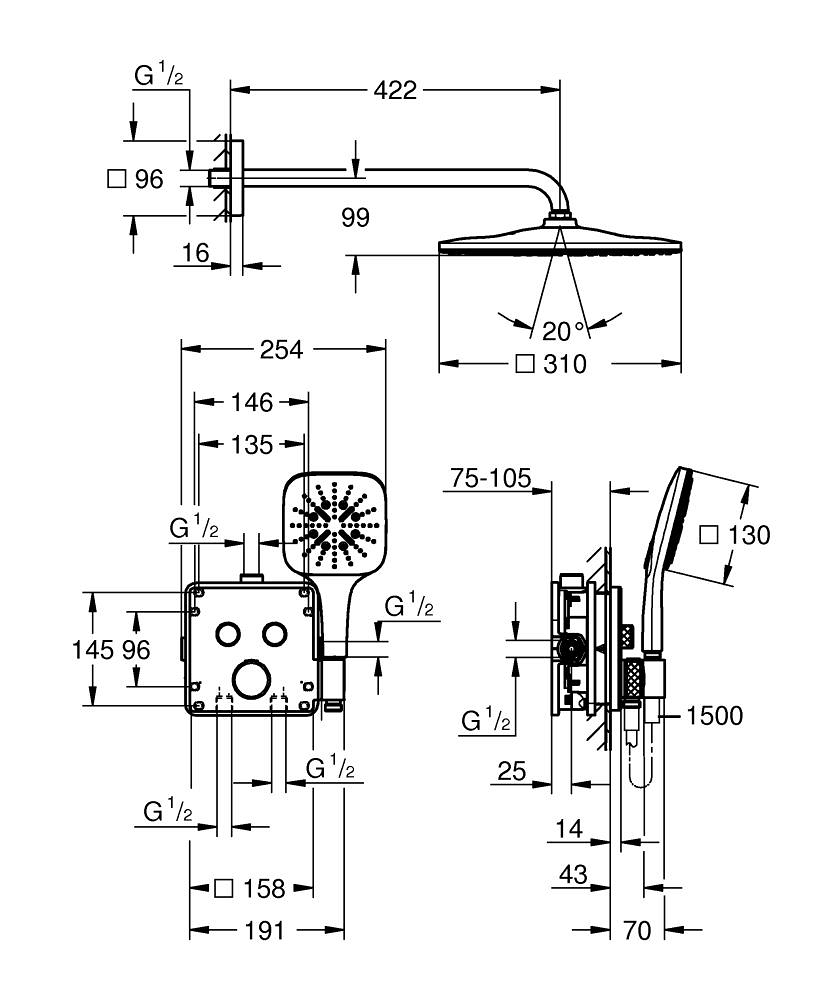Grohe Grohtherm SmartControl falsík alatti zuhanyrendszer Rainshower Mono 310 Cube fejzuhannyal, króm 34865000