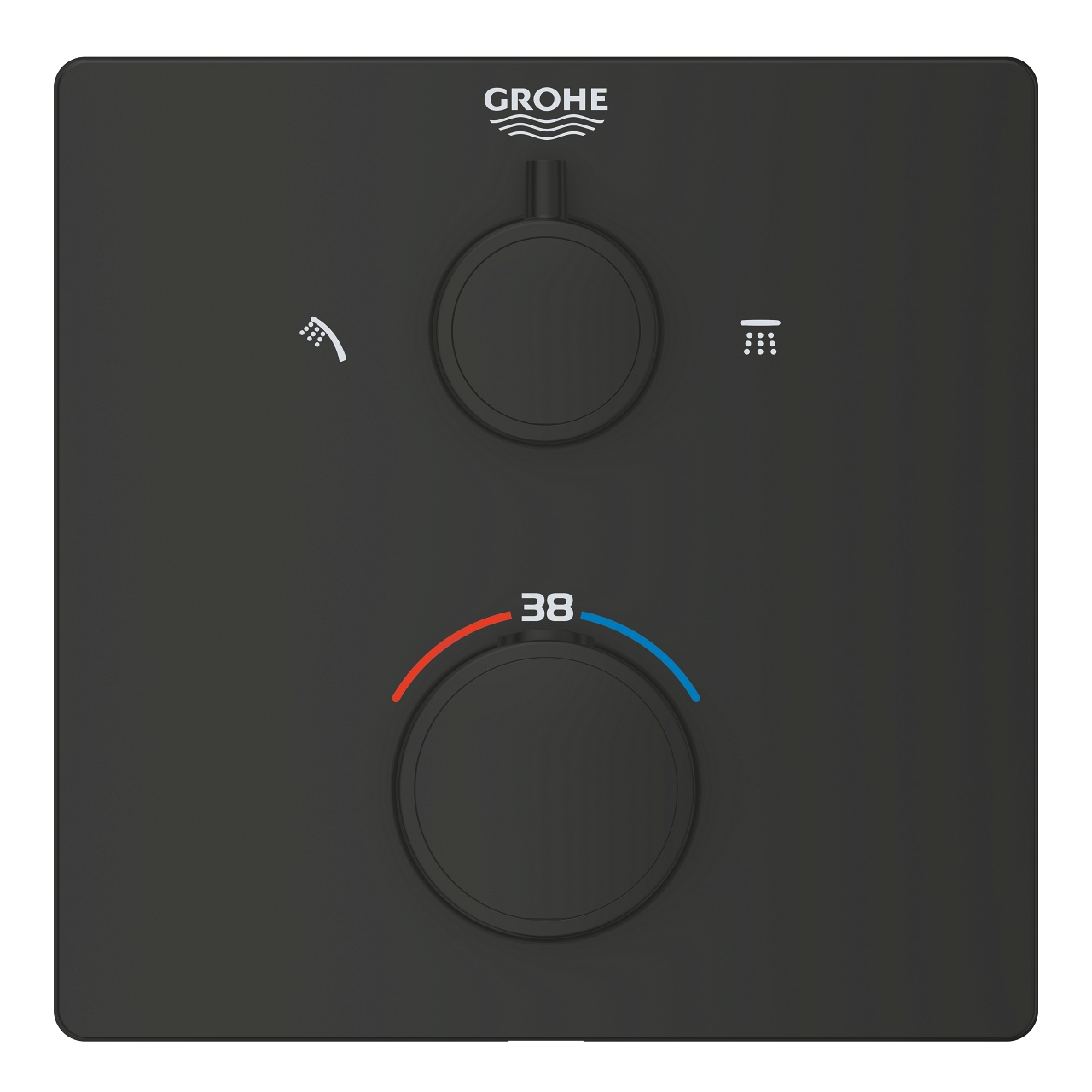 Grohe Grohtherm termosztátos zuhany keverő 2 kimenethez, beépített elzáró/váltó szeleppel, matt fekete 1022092430