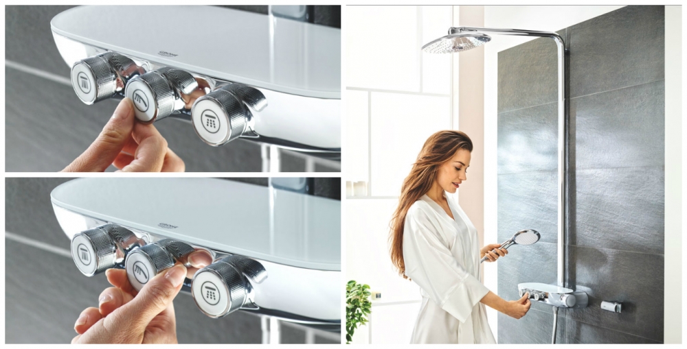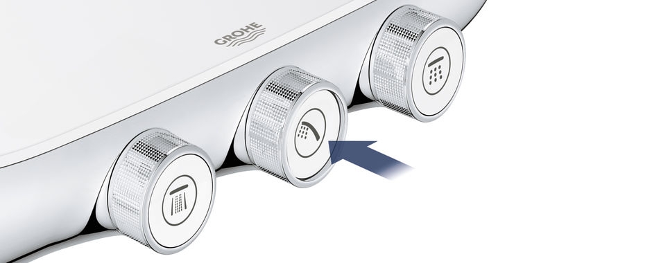 Az új GROHE Rainshower® SmartControl 360 zuhanyrendszerrel mindezt a személyreszabott luxust, minden nap a magáénak tudhatja. Az új innovatív vezérlők biztosítják az intuitív szórásminta kiválasztást, személyreszabott vízmennyiséggel, és memória funkcióval. Egyszerűen csak nyomja meg a start gombot a kezdéshez, állítsa be a víznyomást, majd ha végzett, a stop gombbal állítsa le a rendszert.