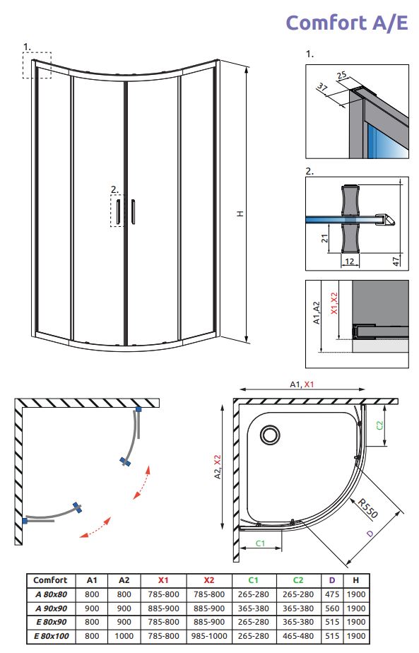 H2O Comfort Black A 80x80 cm íves zuhanykabin, fekete 10228080-54-01 (19671) | SzaniterPlaza.hu - Szaniter webáruház, fürdőszoba felszerelés, csaptelepek, mosdók, zuhanyok, akciós árak.