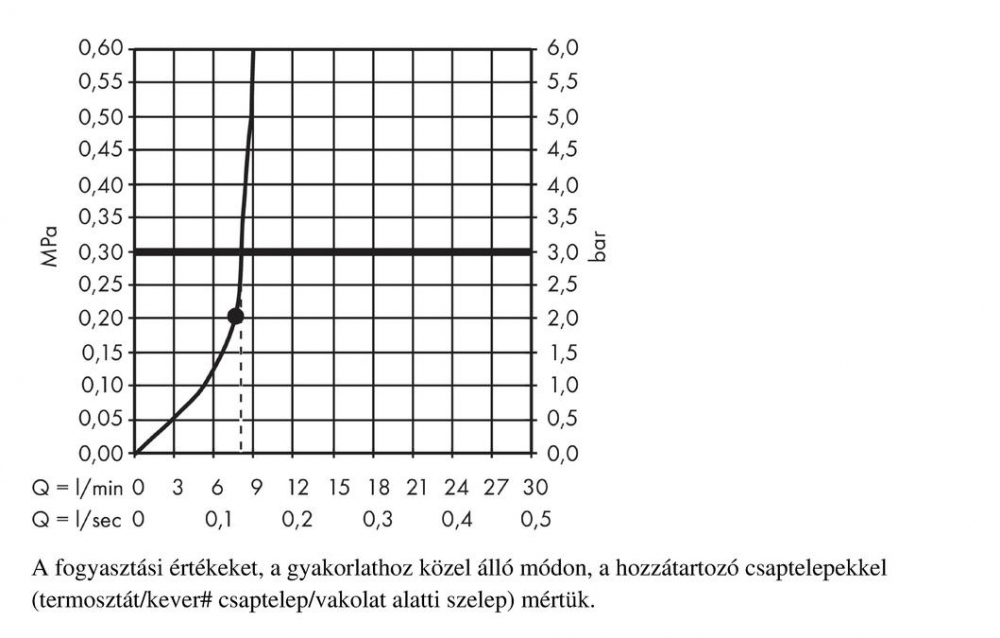 RainAir vízsugár átfolyási mennyisége (3 bar mellett): 9 l/perc