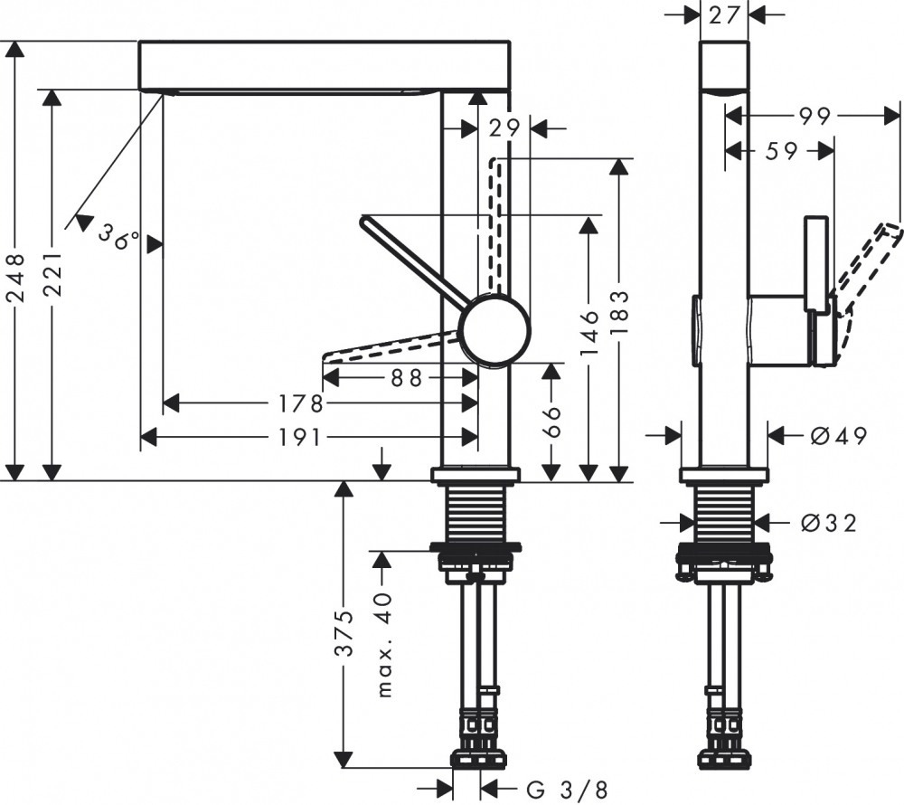 Kludi ZENTA SL egykaros mosdó csaptelep automata leeresztővel, matt fekete 480273965