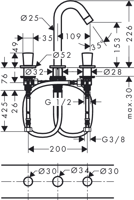 Hansgrohe Logis 3-lyukú mosdócsaptelep 71133 000 (71133000)Hansgrohe