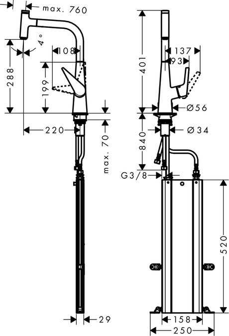 Hansgrohe M7115-H320 egykaros konyhai csaptelep 320 kihúzható kifolyóval, króm 73803000