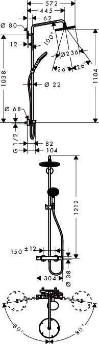 Hansgrohe Raindance Select S 240 1jet Showerpipe króm zuhanyrendszer 27115 000 (27115000) Raindance Select S 240 1jet fejzuhany fejzuhany mérete 240mm, állítható gömbcsuklóval vízsugár típusa: RainAir RainAir vízsugár átfolyási mennyisége (3 Bar-nál): 17 l/perc RainAir vízsugár Rain vízsugár átfolyási mennyisége (3 Bar-nál): 17 l/perc a zuhanytárcsa színe króm 460 mm-es forgatható zuhanykar Ecostat Comfort termosztát termosztát biztonsági gombbal 40°C-nál állítható hőfokkorlátozó nyitókar elfordításával szabályozzuk az egyes funkciókat falsíkon kívüli szerelés csatlakozó mérete DN15 csatlakozócső: G ½ kiállások közötti távolság: 150 mm±12 mm állítható magasságú zuhanytartó Összetevők: Raindance Select 150 3jet kézizuhany DN15 (#28587xxx) Isiflex zuhanycső 1,60 m DN15 (# 28276xxx) csempekiegyenlítő (#98681xxx)