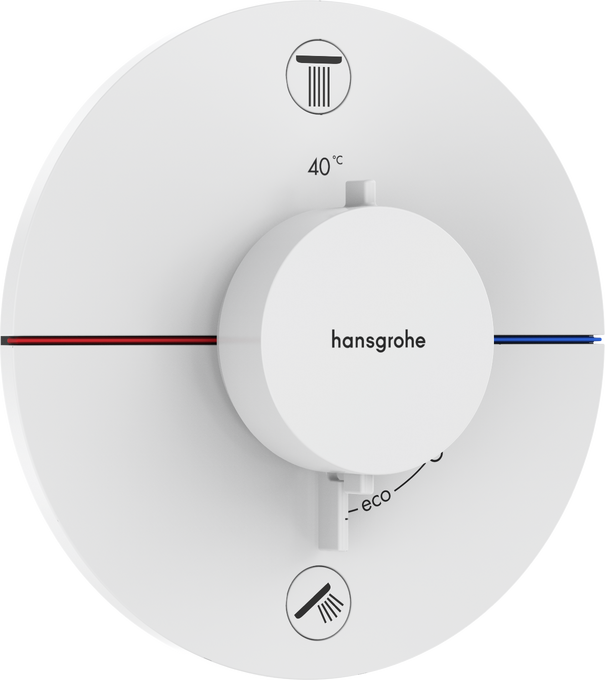 Hansgrohe ShowerSelect Comfort S Falsík alatti termosztát, 2 funkciós, matt fehér 15554700 | SzaniterPlaza.hu - Szaniter webáruház, fürdőszoba felszerelés, csaptelepek, mosdók, zuhanyok, akciós árak.
