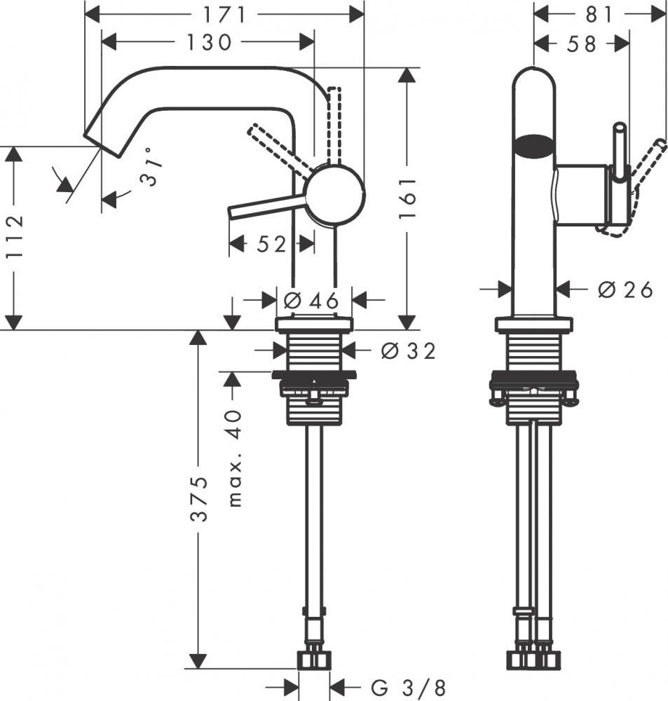 Hansgrohe Vivenis 80 CoolStart egykaros mosdócsaptelep lefolyógarnitúra nélkül, matt fekete 75015670