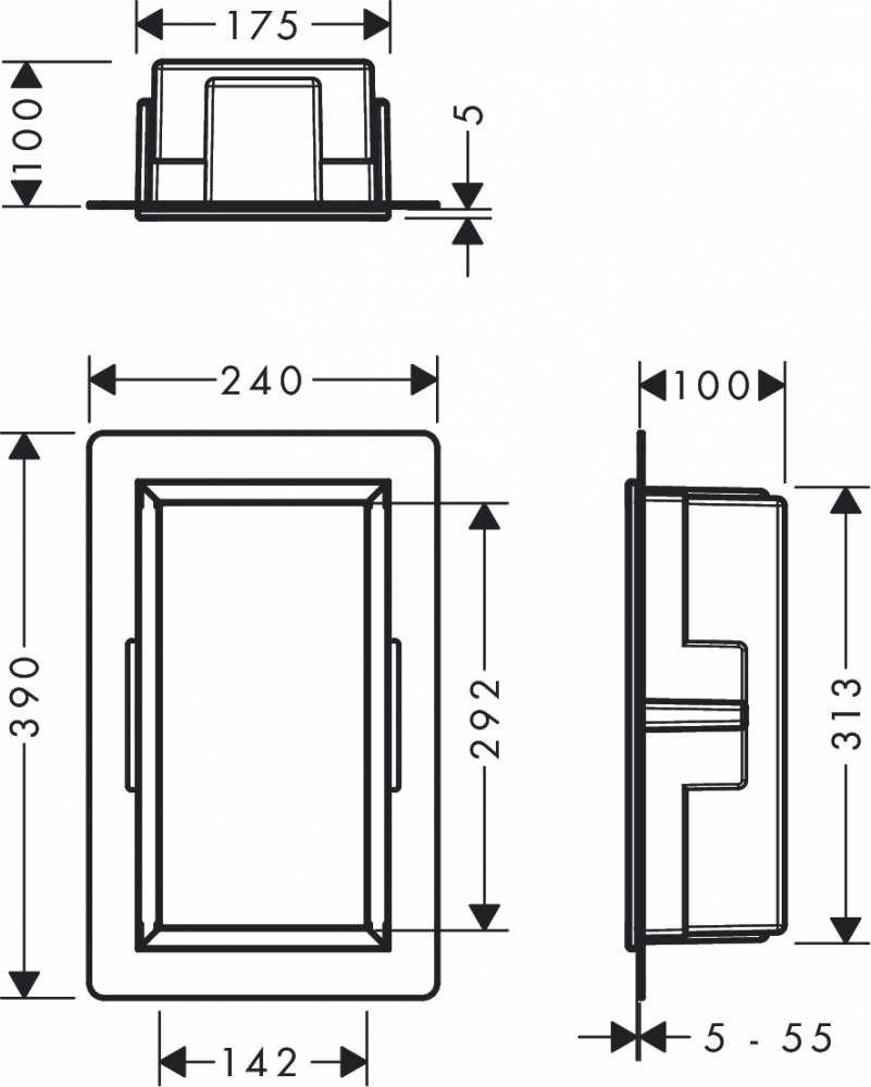Hansgrohe XtraStoris Original Falfülke integrált kerettel, 300/150/100 matt fekete 56057670
