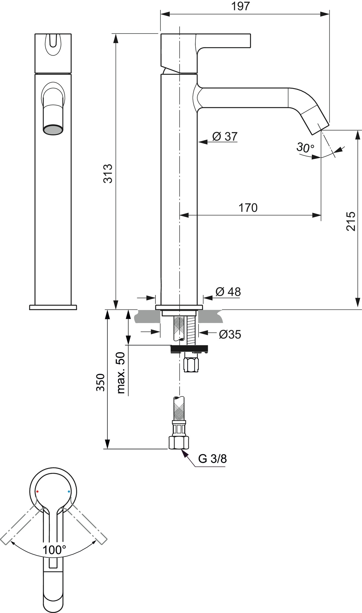 Csaptelep test magassága (zárt állapotnál): 31,3 cm
