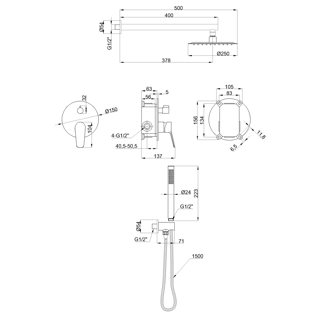 Grohe Cubeo rejtett zuhanyrendszer Tempesta 250 fejzuhannyal, matt fekete 1053362430