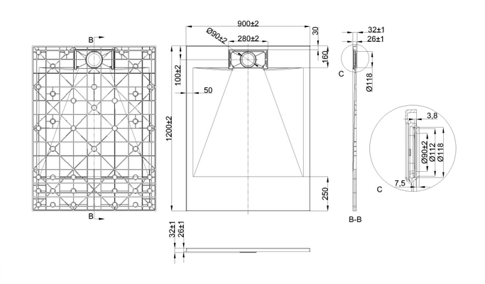 Roltechnik Flat Kvadro téglalap alakú zuhanytálca (80x90 cm, beépíthető, #8000161)