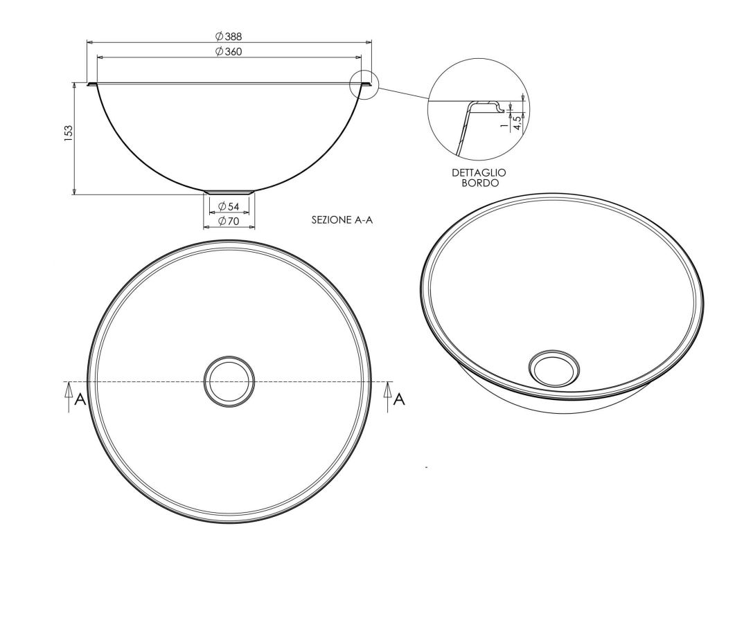 IPA 36x15 cm mélyhúzott szférikus kézmosó medence MESZ3615IPA