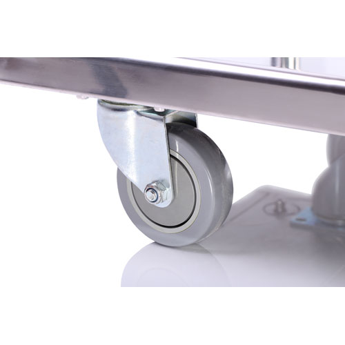 Méret: 900x550x870 mm Erős,masszív szerkezet, könnyen összeszerelhető, 350 kg teherbírás, 2 db önbeálló és 2 db fix kerék, lapraszerelt csomagolásban, anyaga: rozsdamentes acél