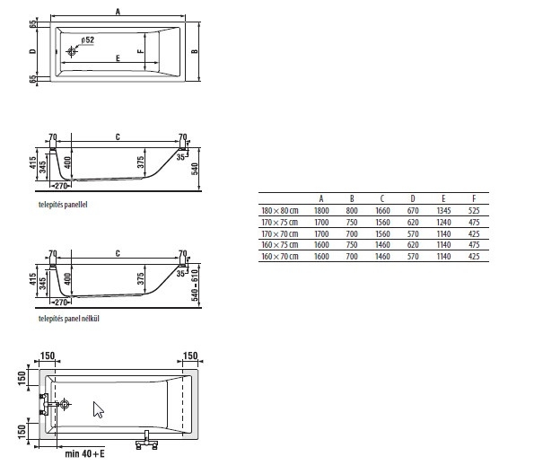 Jika Cubito Kád, kádláb nélkül, 170x70 cm, H2244200000001 (2.2442.0.000.000.1)