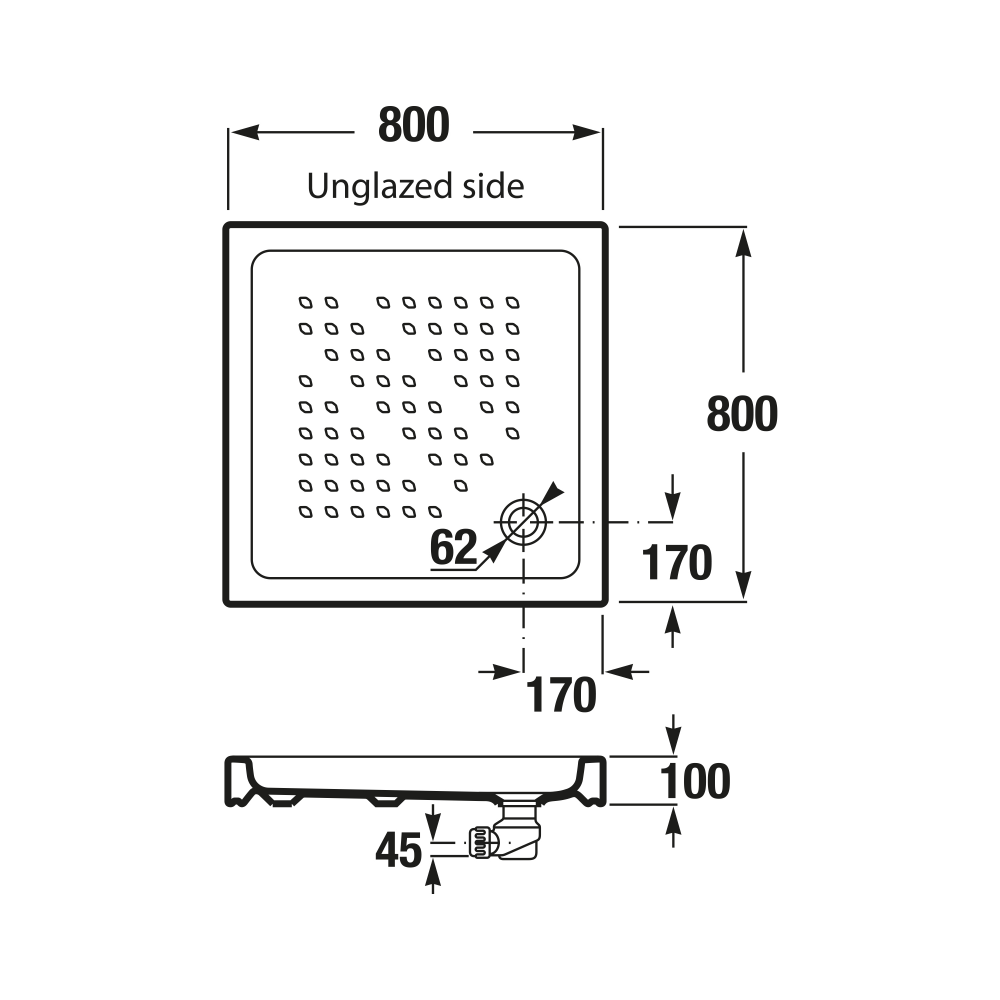 Sanotechnik 90x90 szögletes zuhanytálca levehető előlappal P19