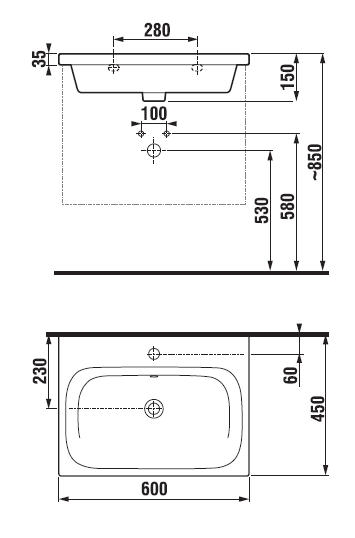 Laufen Pro S Compact 55x38 cm mosdó csaplyuk nélkül LCC felülettel H8189584001091 (8.1895.8.400.109.1)