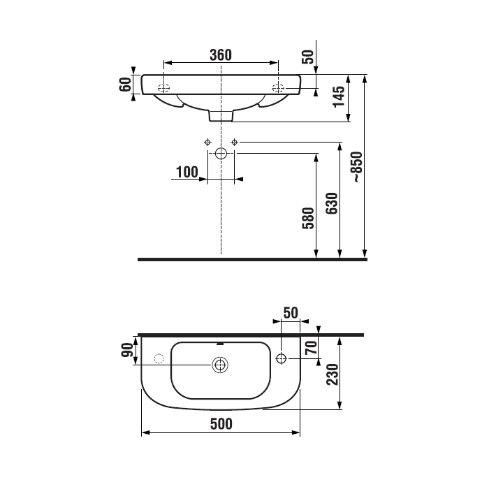 Alföldi Saval 2.0 51x22 cm kézmosó, bal csaplyukkal 7332 5L 01