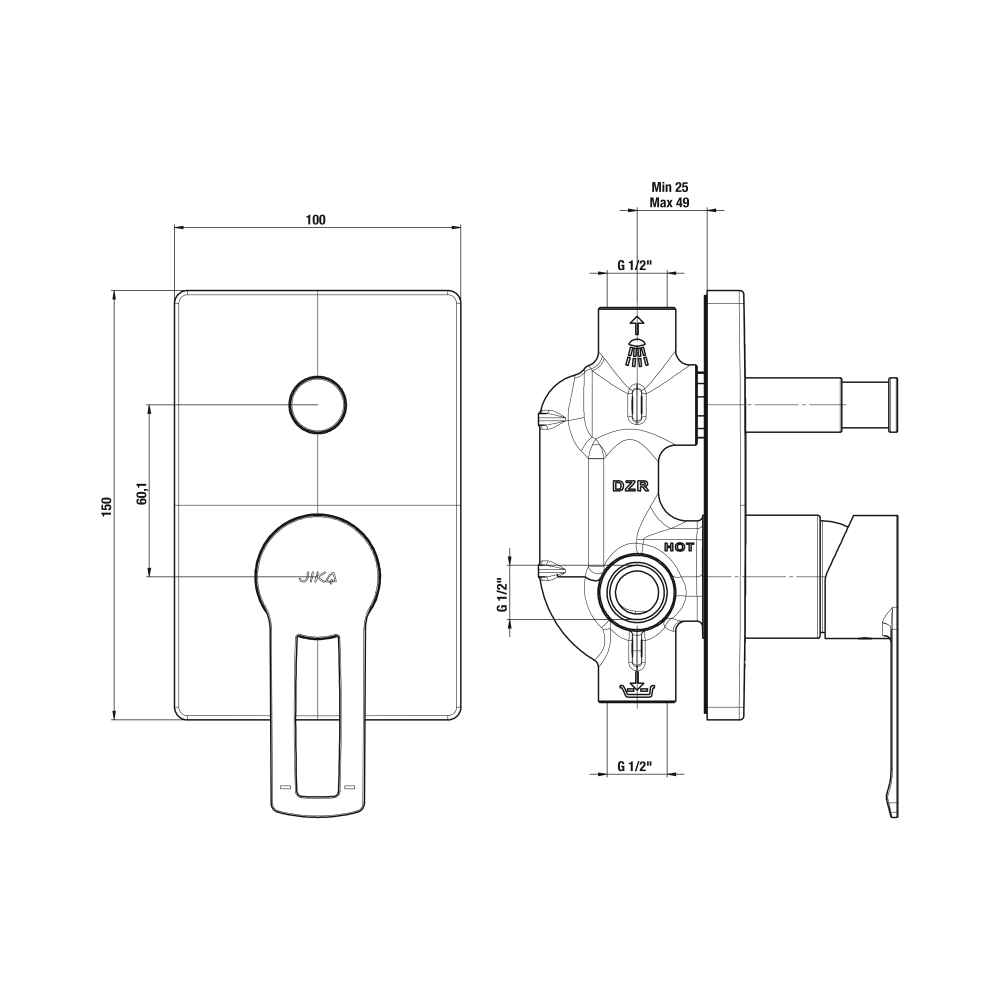 Jika Pure falsík alatti kád- zuhanycsaptelep H3214260040001