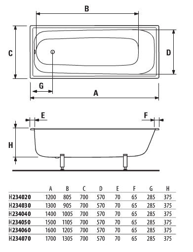 Roltechnik EasyBath Standard 150x70 cm egyenes kád RT1-15070