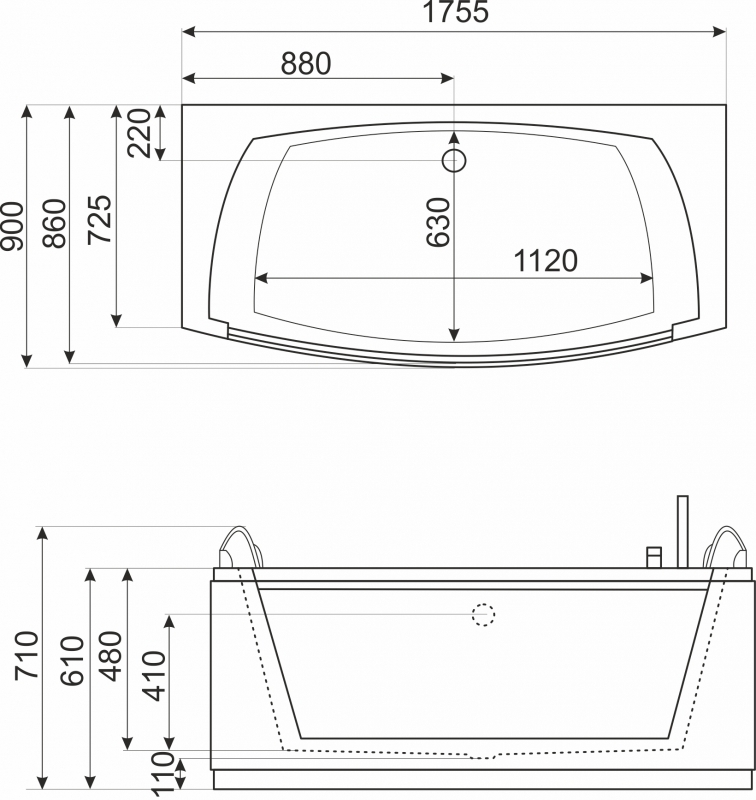 A kád mérete: 175x90 cm