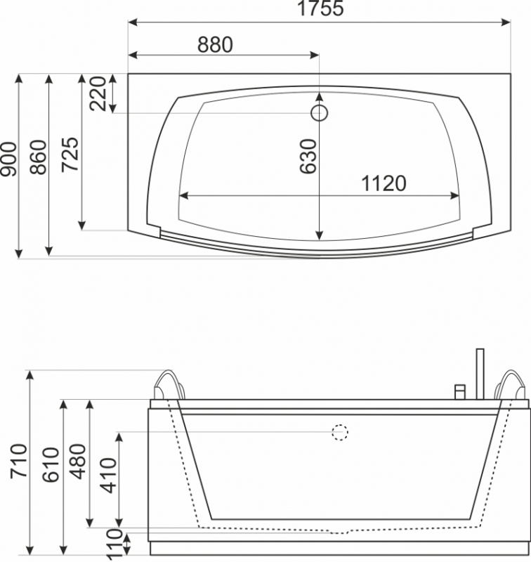 A kád mérete: 175x90 cm