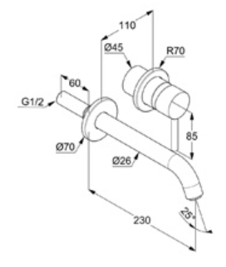 Bugnatese Oxford 6345CRDO Fal alatti mosdócsaptelep 19 cm kifolyóval CRDO / KRÓMARANY