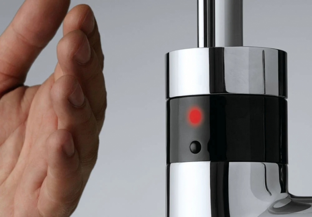 Az elektronikus csaptelep érzékeli a mozgást, így megnyitja a vizet. A víz hőmérséklete a keverőszabályozóval előre beállítható.