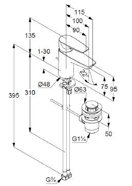 Kludi PURE&SOLID 75 mosdó csaptelep leeresztő szeleppel 343820575