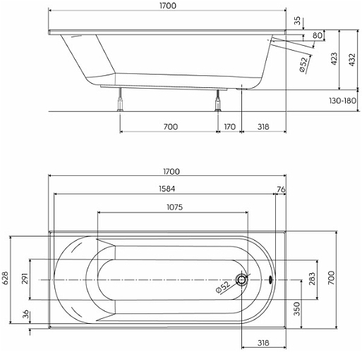 Roltechnik EasyBath Slim 170x70 cm egyenes kád RT2-17070