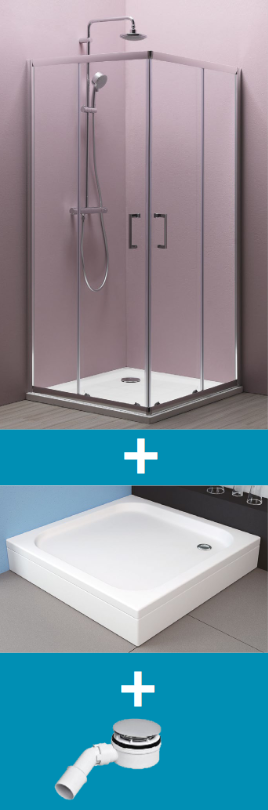 Kolpa-San Eco Quat TKK 90x90 cm szögletes zuhanykabin ezüst profillal + Trin előlapos zuhanytálca + szifonKolpa-San