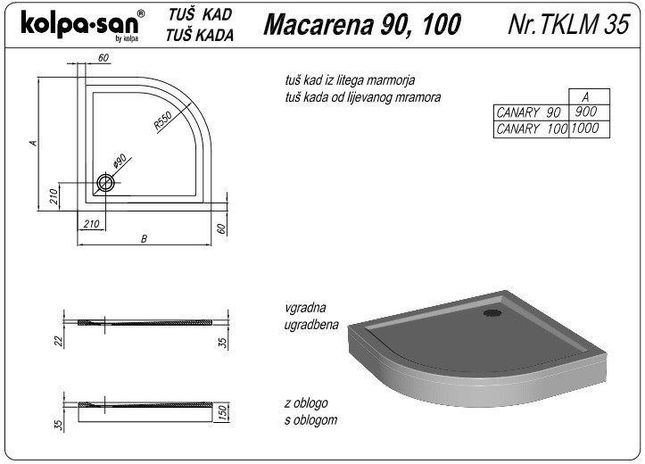 Kolpa-San Macarena 90 zuhanytálca 597170Kolpa-San