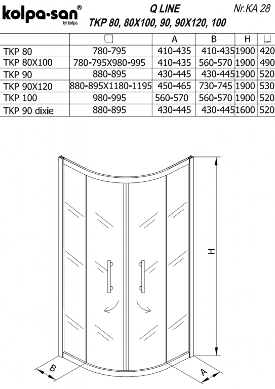 Kolpa-San Q-Line TKP 100x100 negyedköríves zuhanykabin Silver átlátszó üveggel cikkszám: 526620 Negyedköríves zuhanykabin. Levehető ajtószárnyak golyóscsapágyakon, amelyek könnyebb tisztítást tesznek lehetővé. 5 mm-es átlátszó vagy chinchilla edzett üveg, Silver vagy fehér alu profilok. Dupla görgők. Méretek: 100 x 100 cm (Magasság: 190 cm, Bejárati nyílás: 52 cm); A zuhanytálca nem tartozéka a zuhanykabinnak!!!
