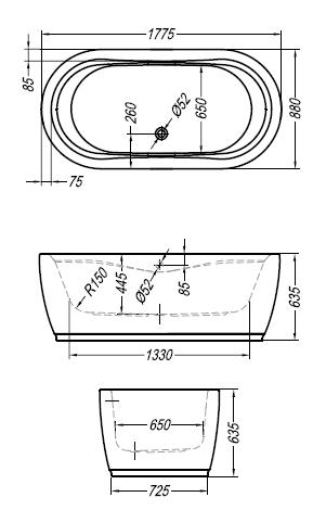 Kolpa-San Siris-FS 178x88/O BLACK/WH szabadon álló fürdőkád 596380