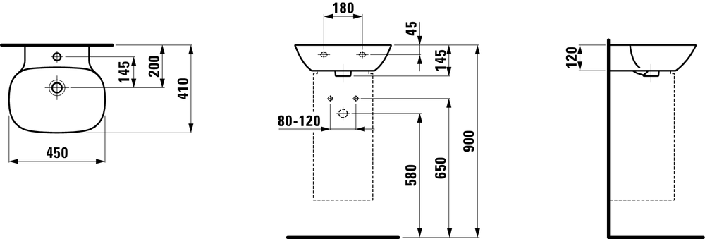 Laufen INO 45x41 cm kézmosó alsó felülete csiszolt, csaplyuk nélkül H8163000001091 (8.1630.0.000.109.1)