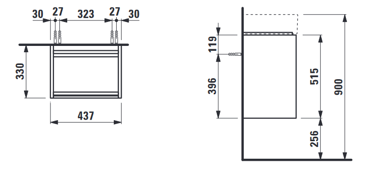 Laufen Lani alsószekrény, egy ajtóval, ajtózsanér jobb oldalon, H815330 mosdókhoz, matt fehér H4039121122601